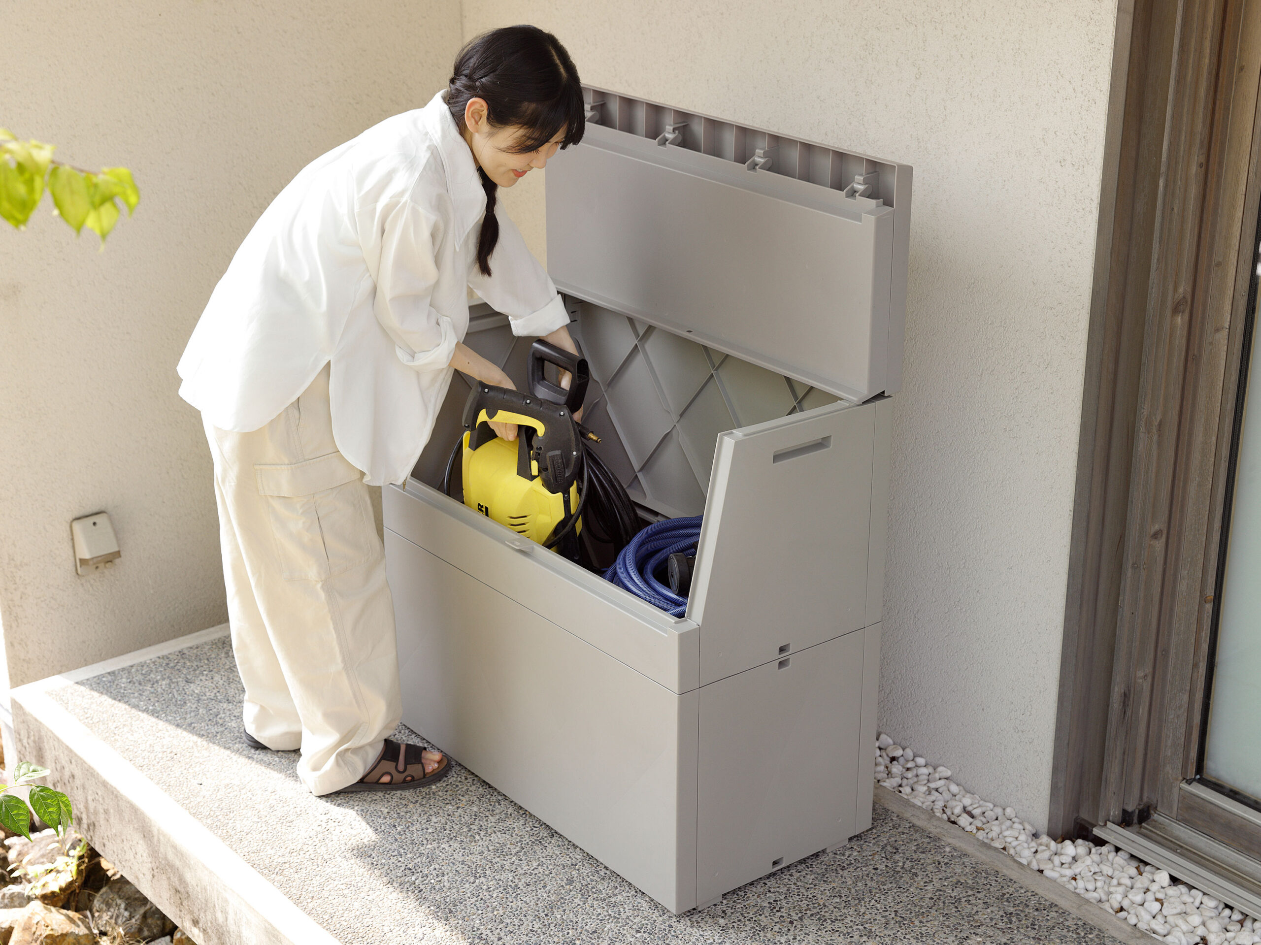 薄型&スリム設計で狭い玄関脇やベランダでも使いやすく、外まわりがすっきりして気持ちよく。