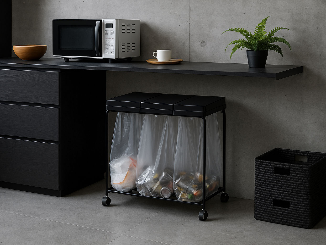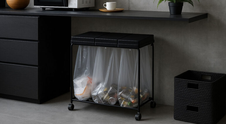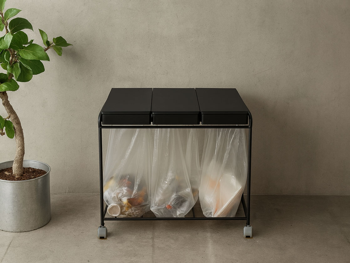 家庭ごみの分別が義務化されている今、「ゴミ箱が足りない」「分別が面倒」と感じている方も多いのではないでしょうか?そんな悩みをスタイリッシュに解決してくれるのが《RISU リス 3分別フレームダストワゴン》。45L対応の大容量設計ながら、生活感を抑えたミニマルデザインで、女性の暮らしにもスマートに寄り添ってくれる頼れるアイテムです。