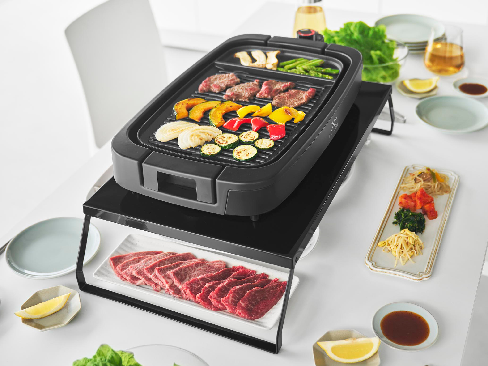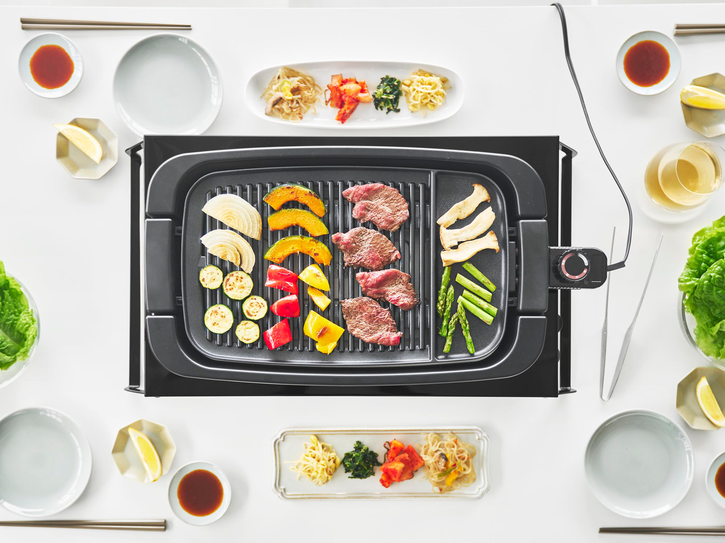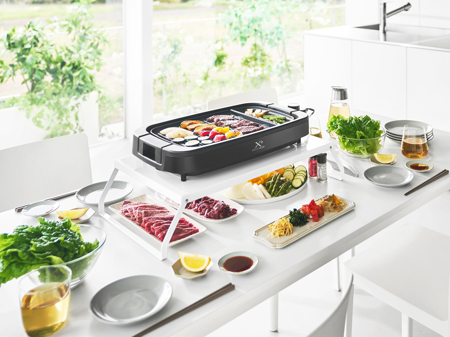 ホットプレートを「隠す」のではなく「整えて収納」できるため、生活感を抑えた美しいキッチンに。