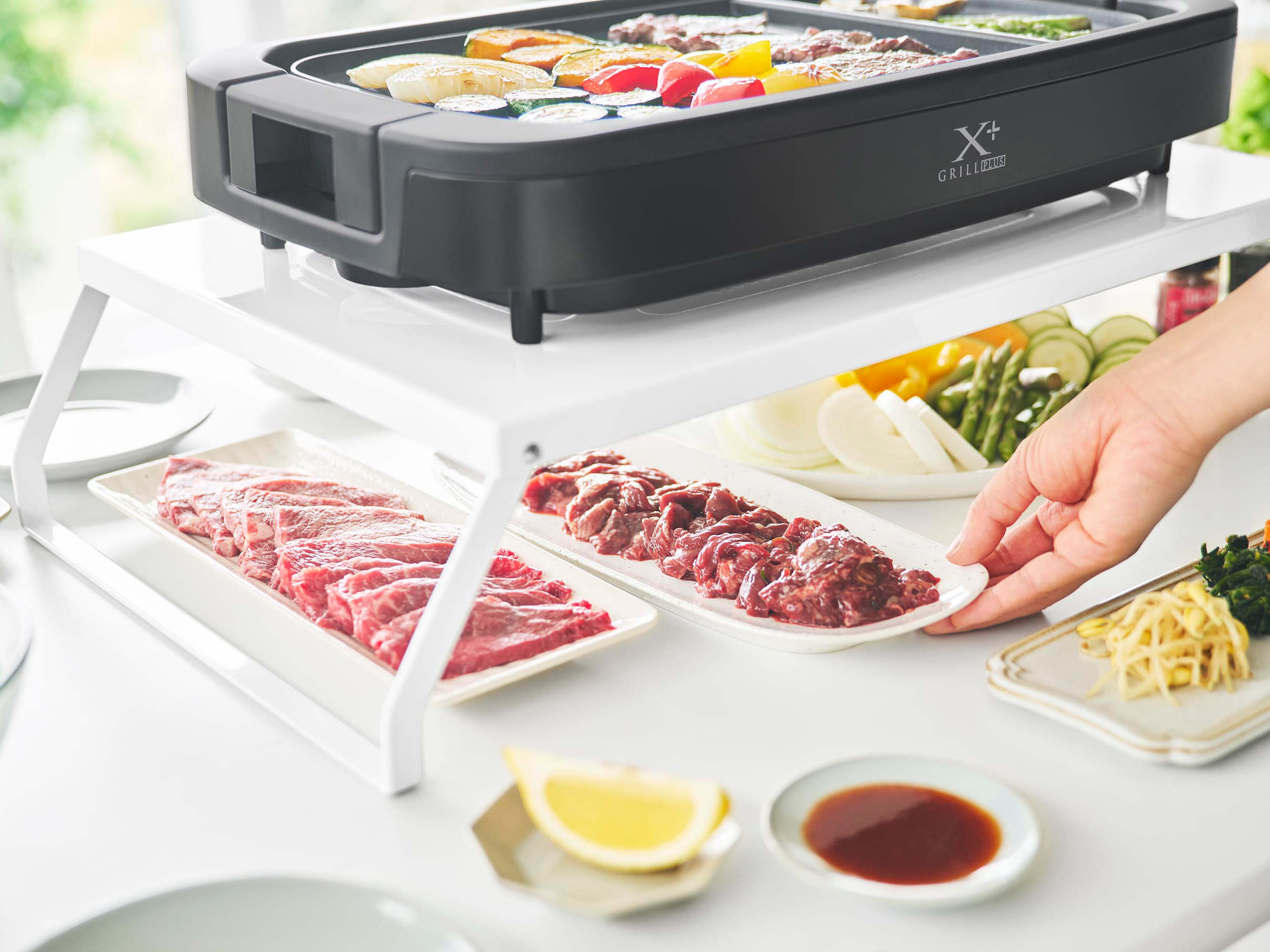 この電気プレートラック最大のポイントは、ラック下にしっかりとした空間が確保されていること。ホットプレート本体を立てて収納しながら、その下にはプレートや付属パーツ、トレーなどをまとめて置くことができます。「本体は上、付属品は下」と分けて収納できるため、使用時の準備も片付けもスムーズ。家族でホットプレートを使うシーンでも、必要なものを一度に取り出せるのでストレスがありません。