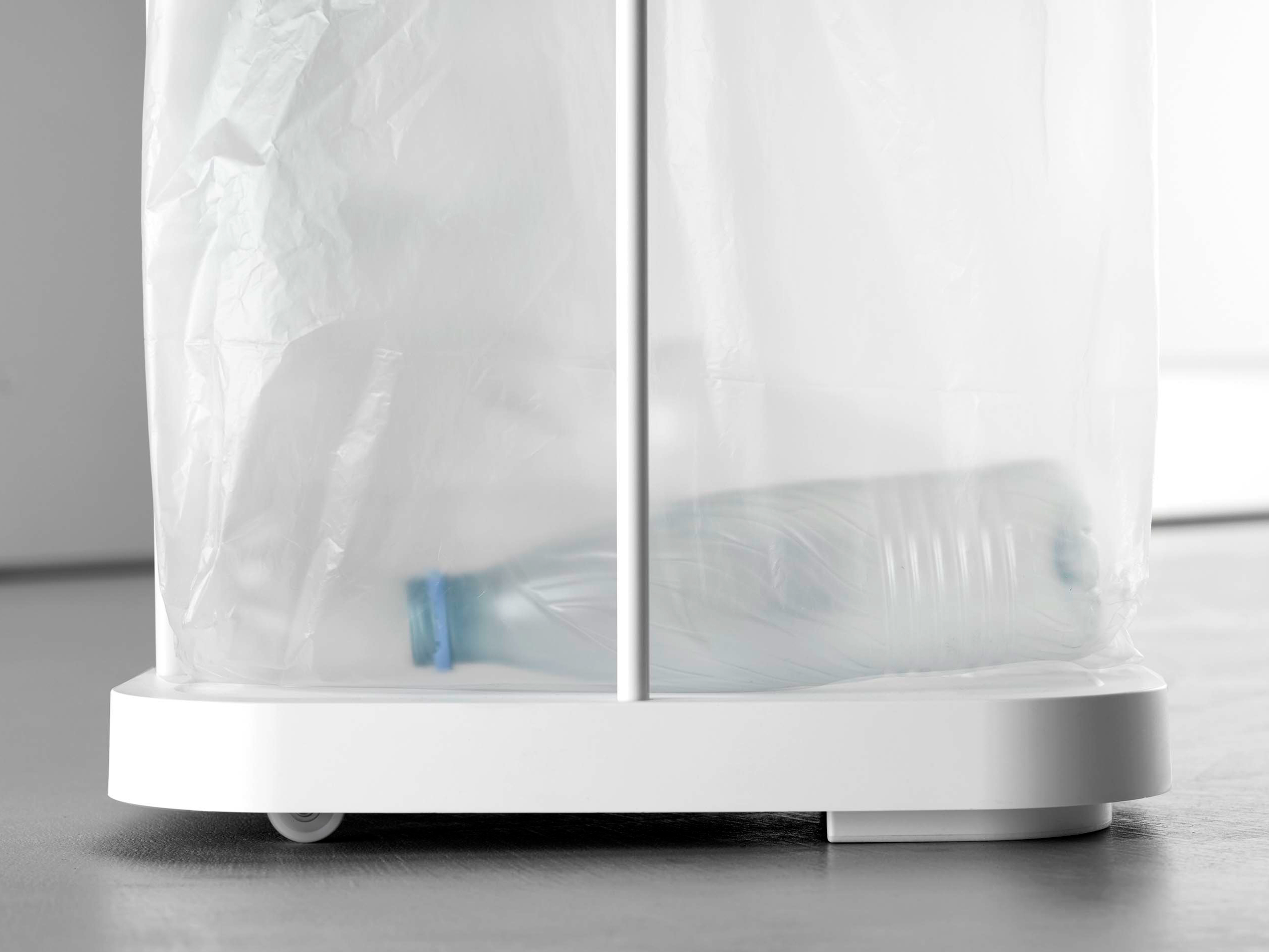 LUCEは、フタ付きの箱型ゴミ箱とは異なり、フレームに直接ゴミ袋をセットするスタイル。無駄のない構造により、45Lゴミ袋をそのまま無理なく取り付けることができます。さらにキャスター付きで移動も簡単。掃除の際やキッチンレイアウトの変更時にもストレスがありません。