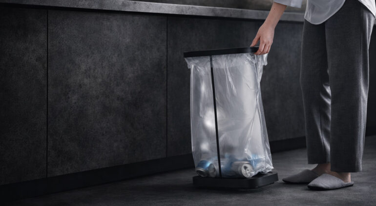 LUCEは1台で1種類のゴミ袋をセットする仕様ですが、複数台を並べて設置することで簡単に分別ステーションを作ることができます。可燃・不燃・プラスチック・資源ゴミなど、地域の分別ルールに合わせて並べるだけ。フレームがスリムなので、横に並べても圧迫感がありません。袋の色を変えることで中身の識別も簡単になり、家族みんなが自然と分別できる環境が整います。