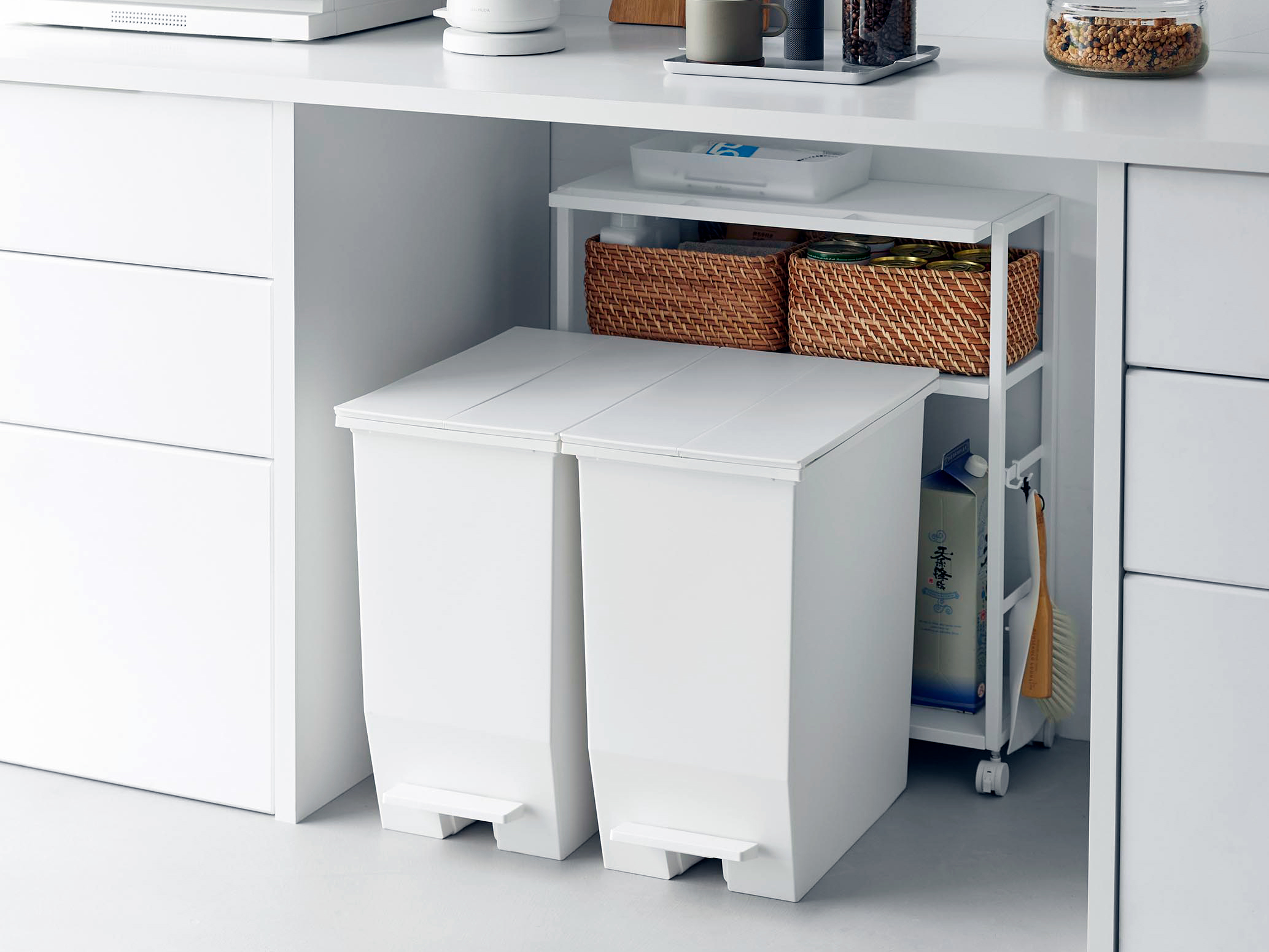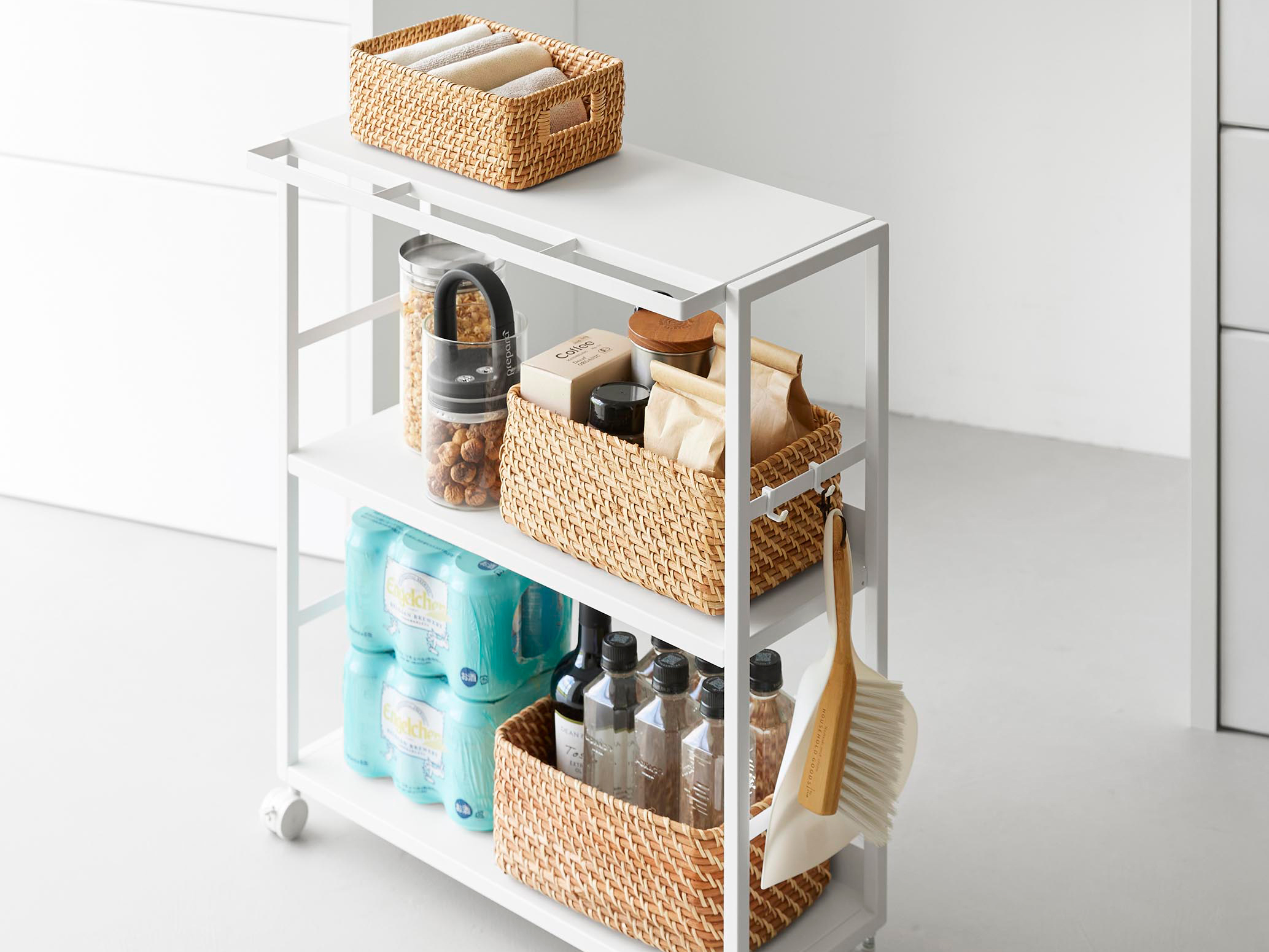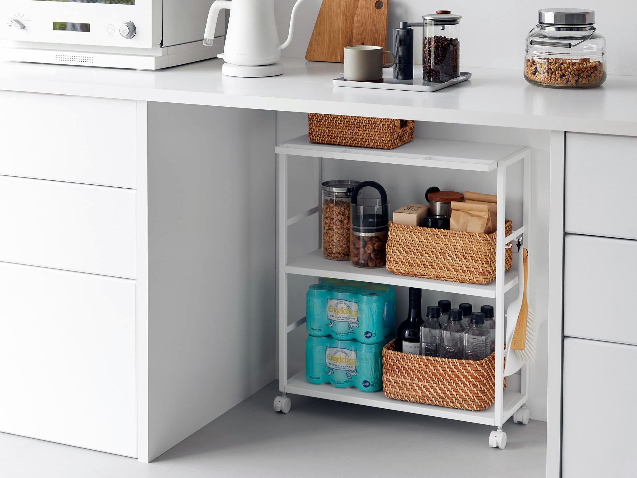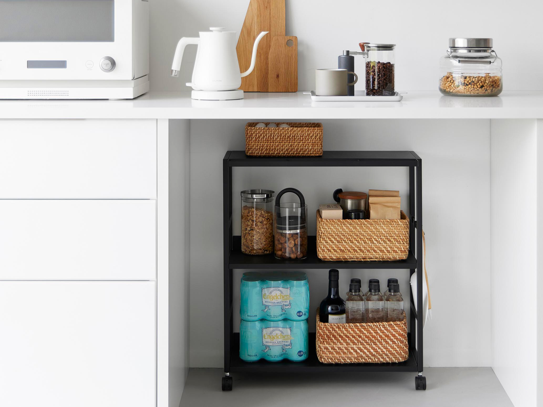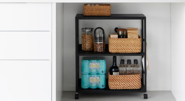 スリムで美しいデザイン、使いやすいキャスター、十分な収納力。そのすべてが揃っており、キッチンをより快適で整った空間へと導いてくれます。