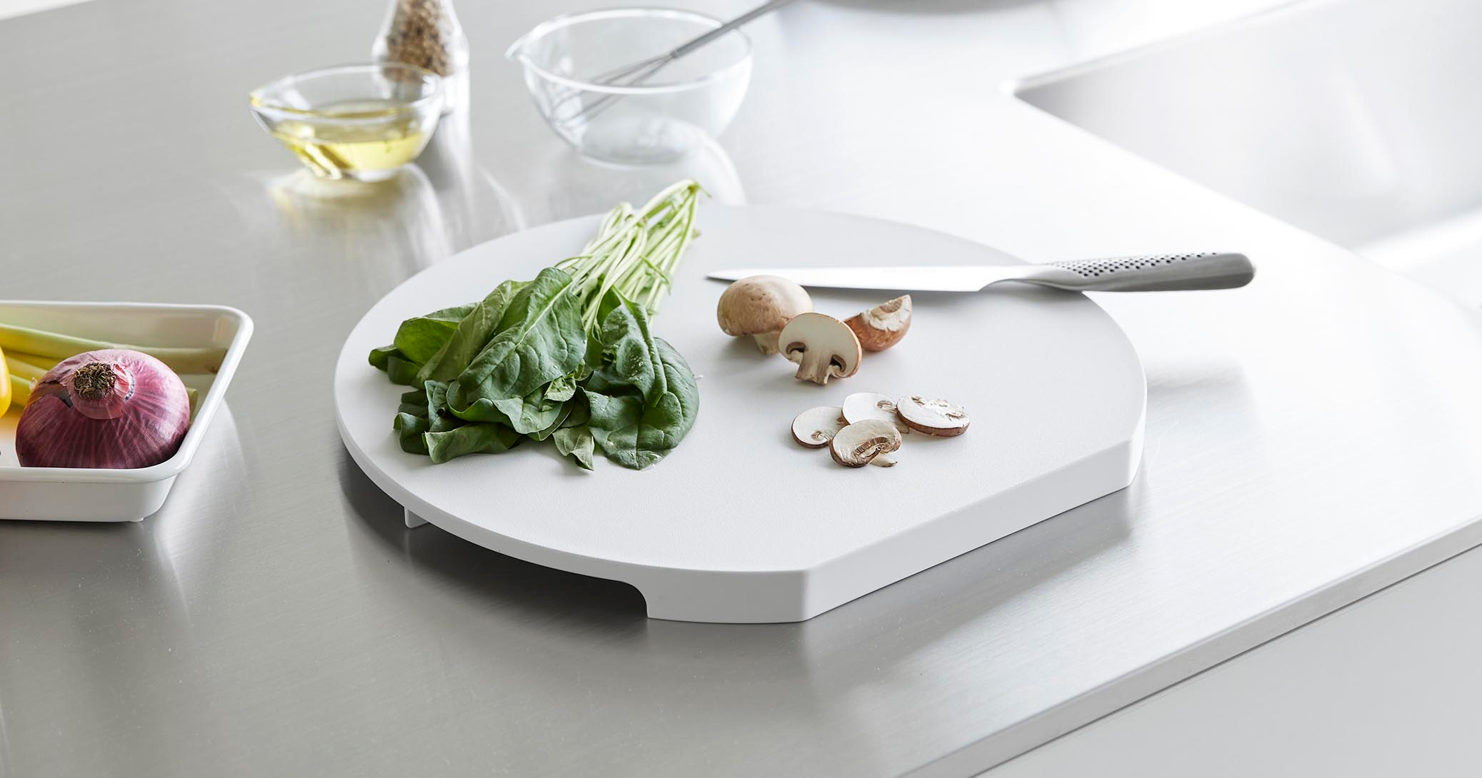 浮かせる収納で時短 山崎実業tower抗菌まな板ラウンドLの使い方