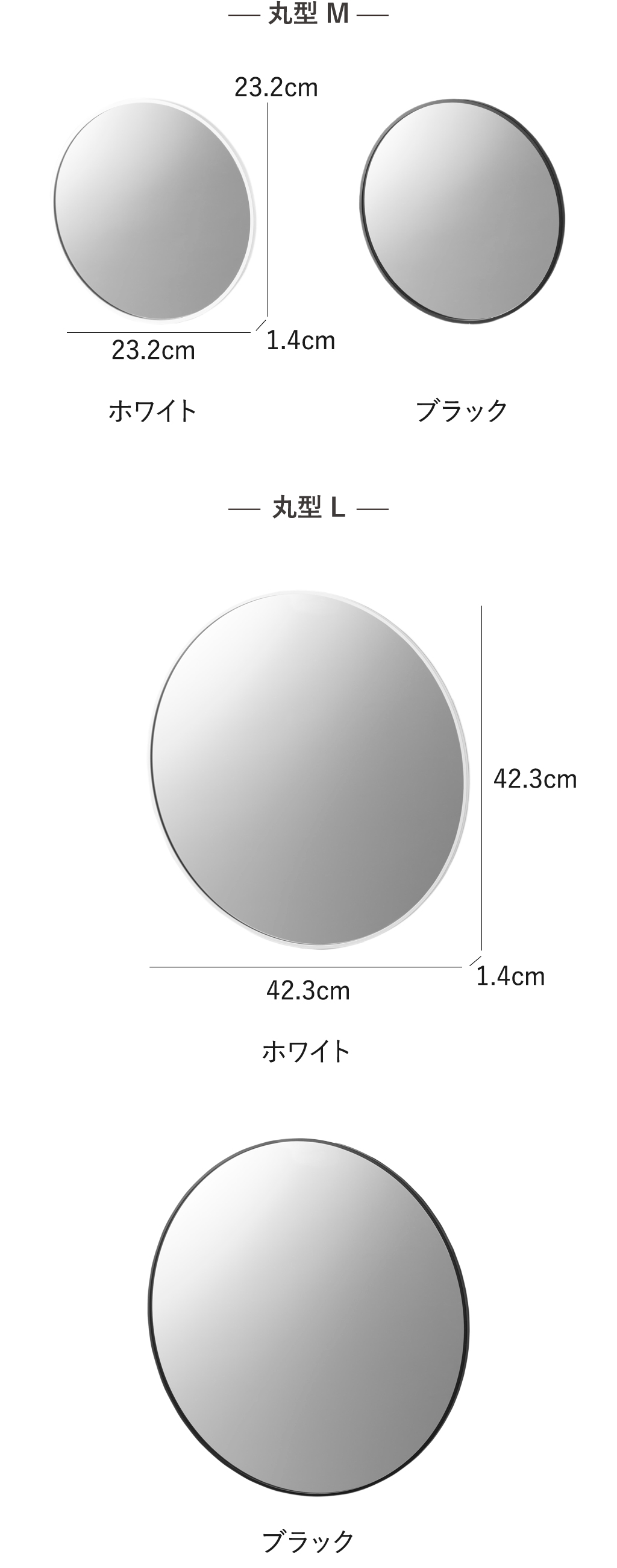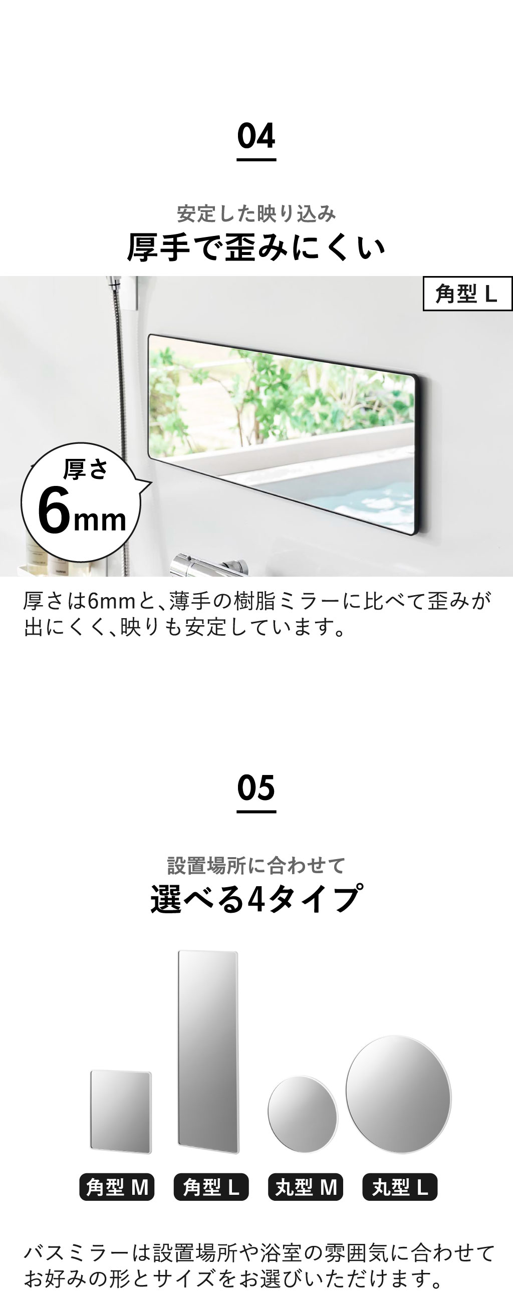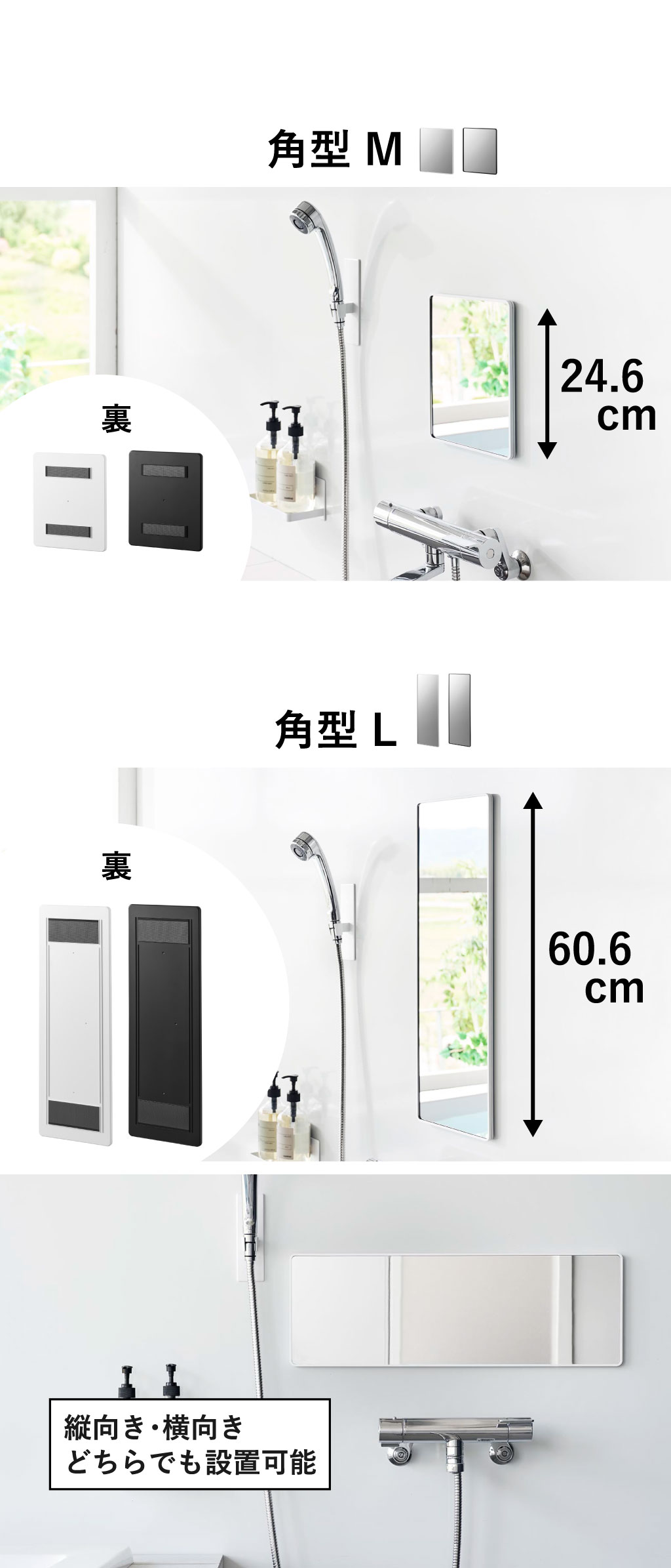 バスルームの雰囲気に合わせて、角型と丸型の2種類からマグネットバスミラーのデザインを
