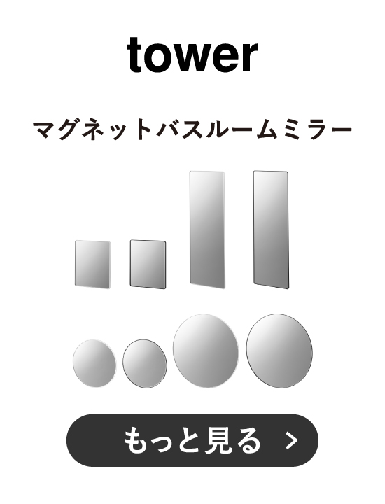 浴室壁面に設置できる、towerシリーズのおしゃれなマグネットバスミラーです。