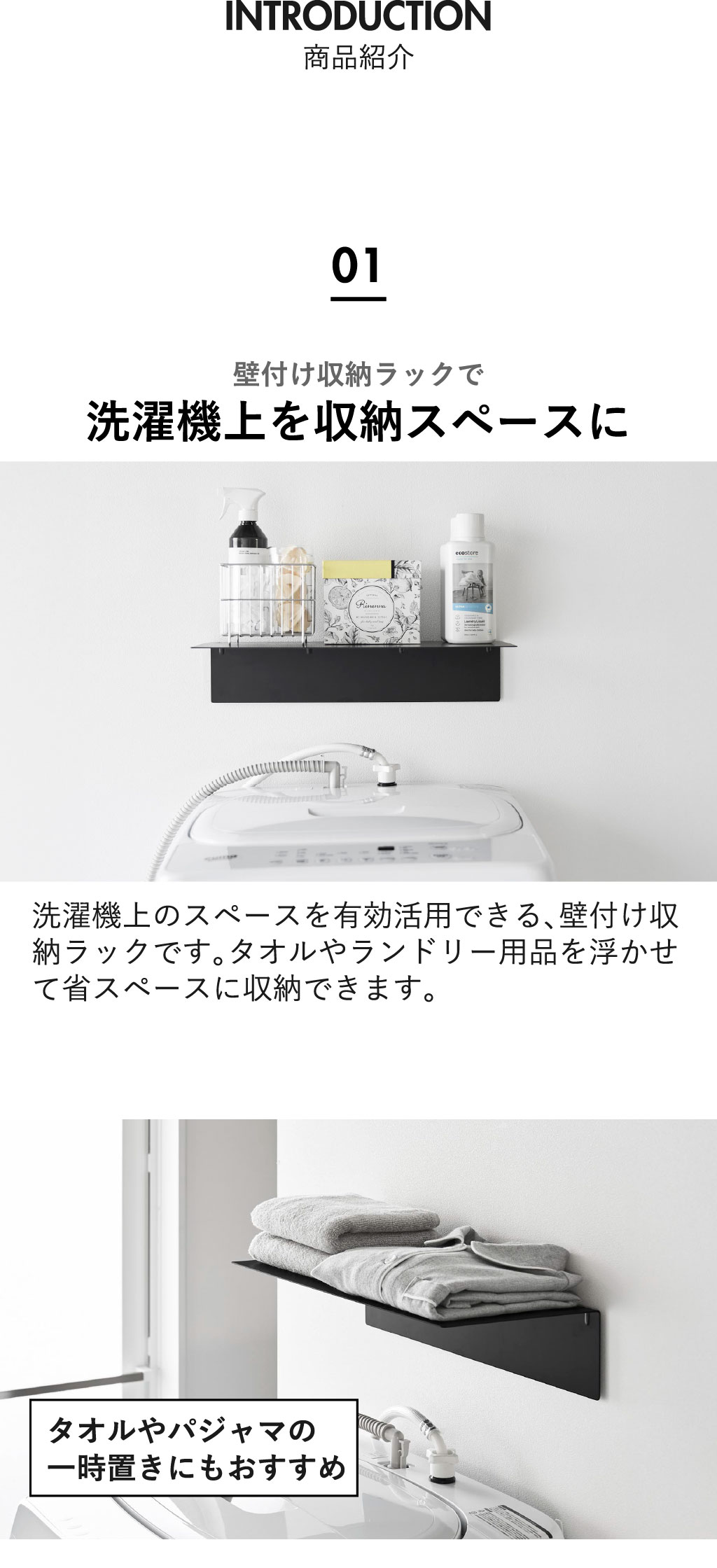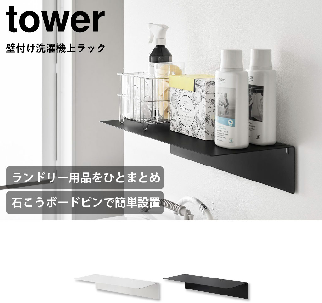 洗濯機上のスペースを活用して収納をプラスできる、towerシリーズのおしゃれな壁付け収納ラックです。