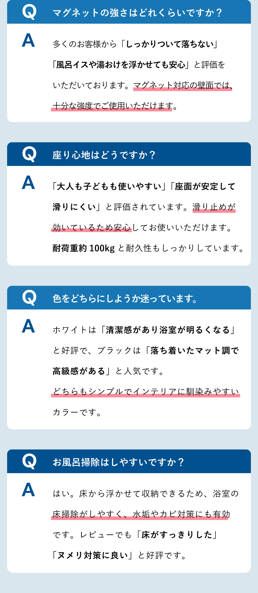 お風呂椅子のカビやヌメリの発生も予防でき、衛生的です。