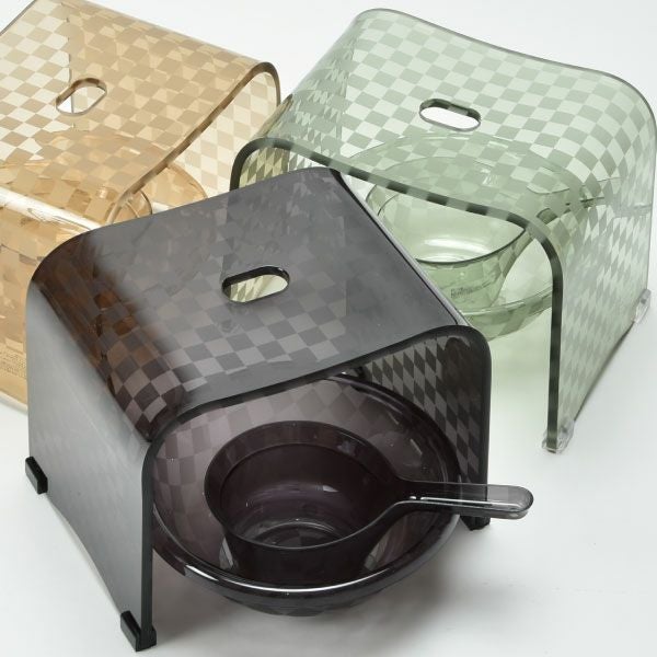 上質なアクリルでできた、チェック柄のデザインバスシリーズです。