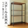 マットな質感のスチールと、木目と風合いが味わい深いウォールナットの組合せがおしゃれな「スチールワイドラック 4段」です。