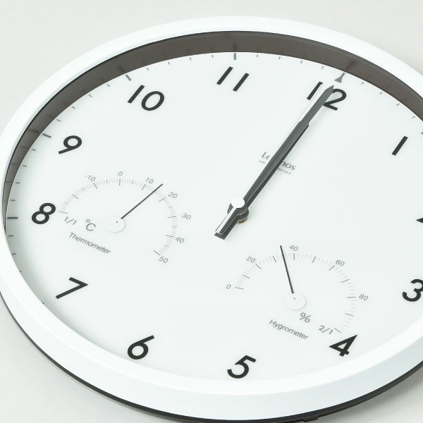 電波時計と温湿度計が一緒になったデザイン掛け時計