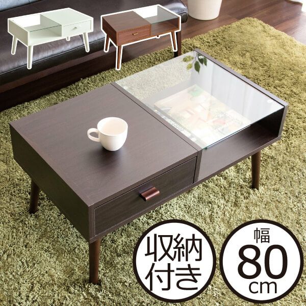 スタイリッシュなガラス天板とあたたかみのある木材を組み合わせた、シンプルなローテーブルです。引き出しには小物が収納できるので、リビングが片付き、見た目もすっきり。ガラス天板の下にはお気に入りのものを飾りながら収納でき、隠すと魅せるを両立します。インテリア性と実用性を兼ね揃えたアイテムです。