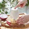 しょうが、にんにく、みょうがなどの薬味をワンプッシュでみじん切りにできるコードレスチョッパーです。 みじん切りにしたい食材をカップに入れてボタンを押すだけ。 上段、中断、下段に分かれた3枚刃が素早くまんべんなく刻んでくれます。 料理やドリンクに使いたいしょうがのみじん切りもラクラク。