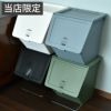ゴミ分別シール付き フロントオープン式のゴミ箱で、スタッキングしたまま使うことができます。