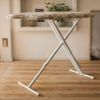 アイロン台の脚部分は、X型になっているので、スカートなどアイロンがしにくい洋服も奥まで入ります。またアイロン置き場は、台の下へ収納できます。