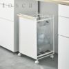 ワゴンを壁に付ければ正面の目隠しボードでレジ袋を隠せて生活感を出しません。シンプルなデザインが、キッチンをスッキリ見せてくれます。