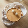お気に入りのアイテムを魅せて収納できる、アクセサリートレーです。それぞれのトレーは回転式のため、まるでショップのディスプレイのように、ピアスやイヤリングなどのアクセサリーを飾ることができます。天然木製の蓋がアクセントになり、空間をよりおしゃれに演出してくれます。