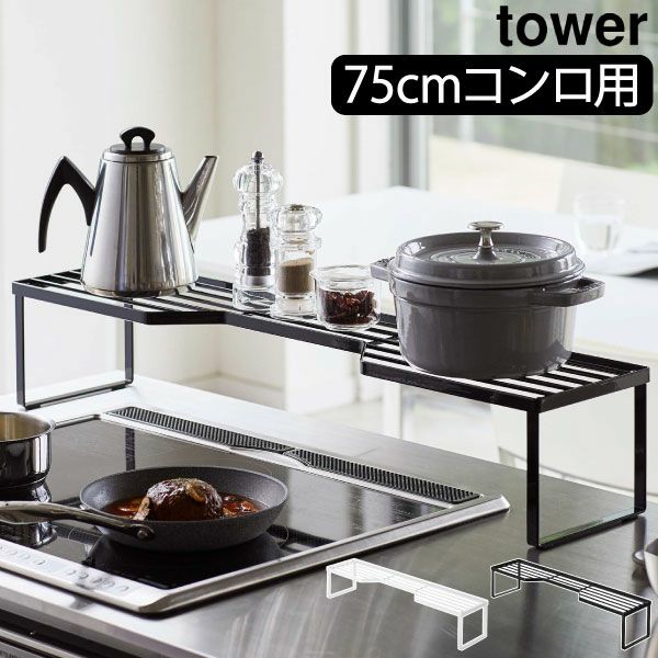 【 山崎実業 排気口カバー上コンロ奥ラック タワー 75cmコンロ用 tower 】