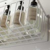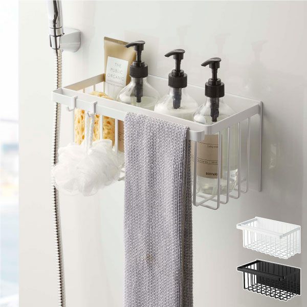 磁石のくっつく浴室の壁面にぴたっと設置できるバスラックです。ボディソープやシャンプー、コンディショナーなどのディスペンサーボトルや、洗顔用のチューブなどのバスアイテムをまとめて収納。ひとまとめに収納できることで、すっきりとしたバスルームに。