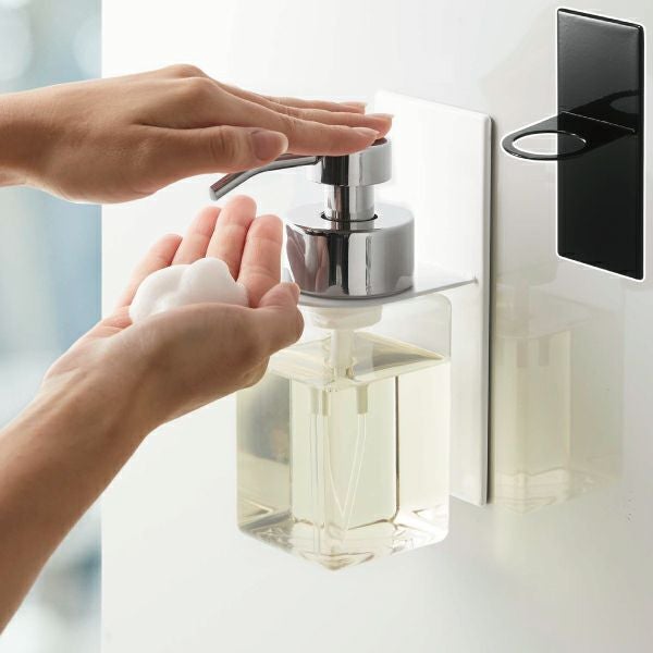 磁石でピタッと簡単設置。泡タイプのソープボトルを浮かせて収納
