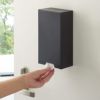 前面を手前に引っぱることで、ななめに開くフラップ式。フタを取り外す手間がなく、壁面に貼り付けたまま、簡単にマスクを補充することができます。