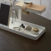 カギや小銭など、ちょっとした小物はトレーへ気軽に収納できます。スマホもバーに立て掛けて収納できて便利。トレー内部はゴムマットになっているので収納したものを傷つけません。