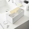 セットの方法は、フタを取り外して、ペーパータオルやティッシュを入れるだけ。約高さ7cmまでの一般的なボックスティッシュなら、箱のまま収納することができるので、取り換え作業を楽に行うことができます。200組(400枚)まで対応可能です。