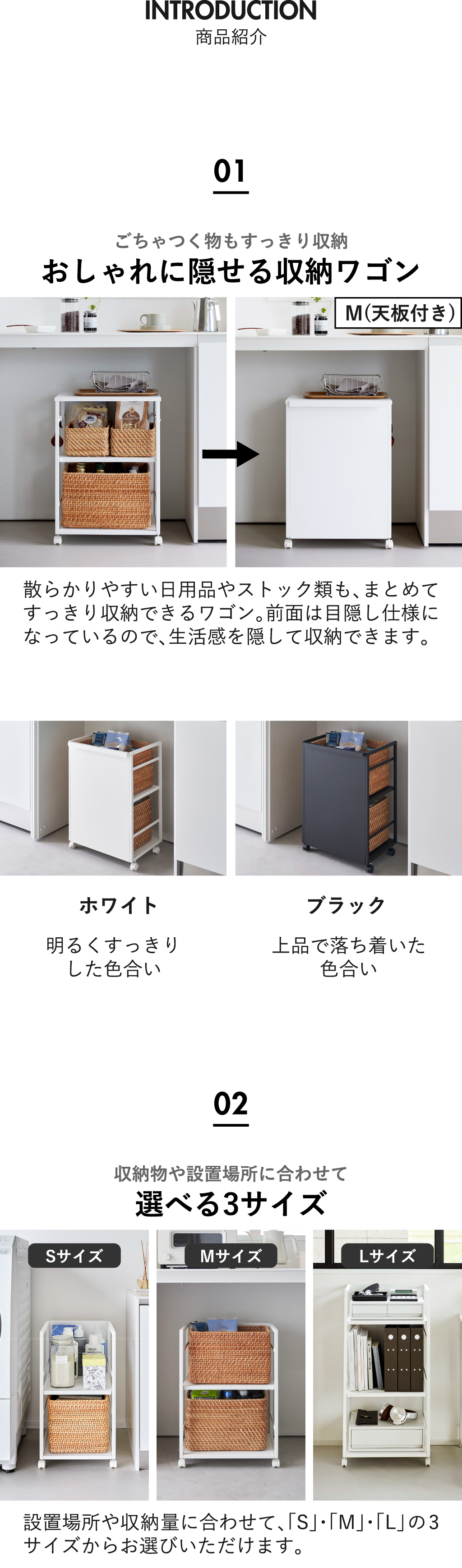収納物や設置場所に合わせて「S」「M」「L」の3サイズからお選びいただけます。