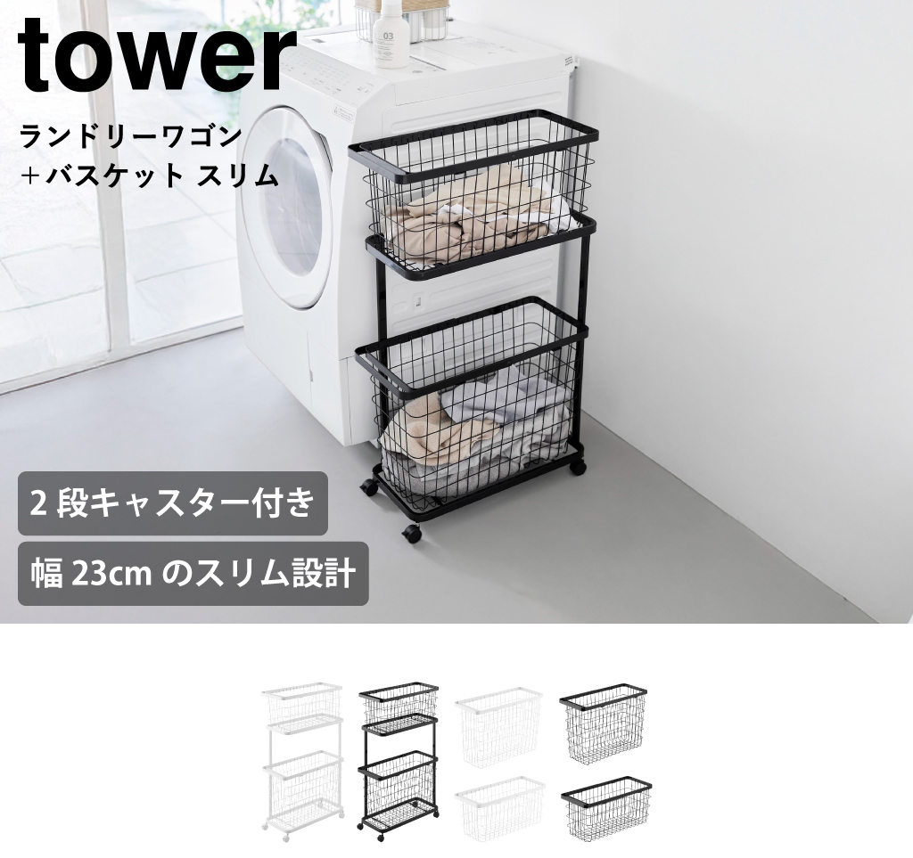 ランドリーバスケットスリムと2段キャスター付きの組み合わせで、