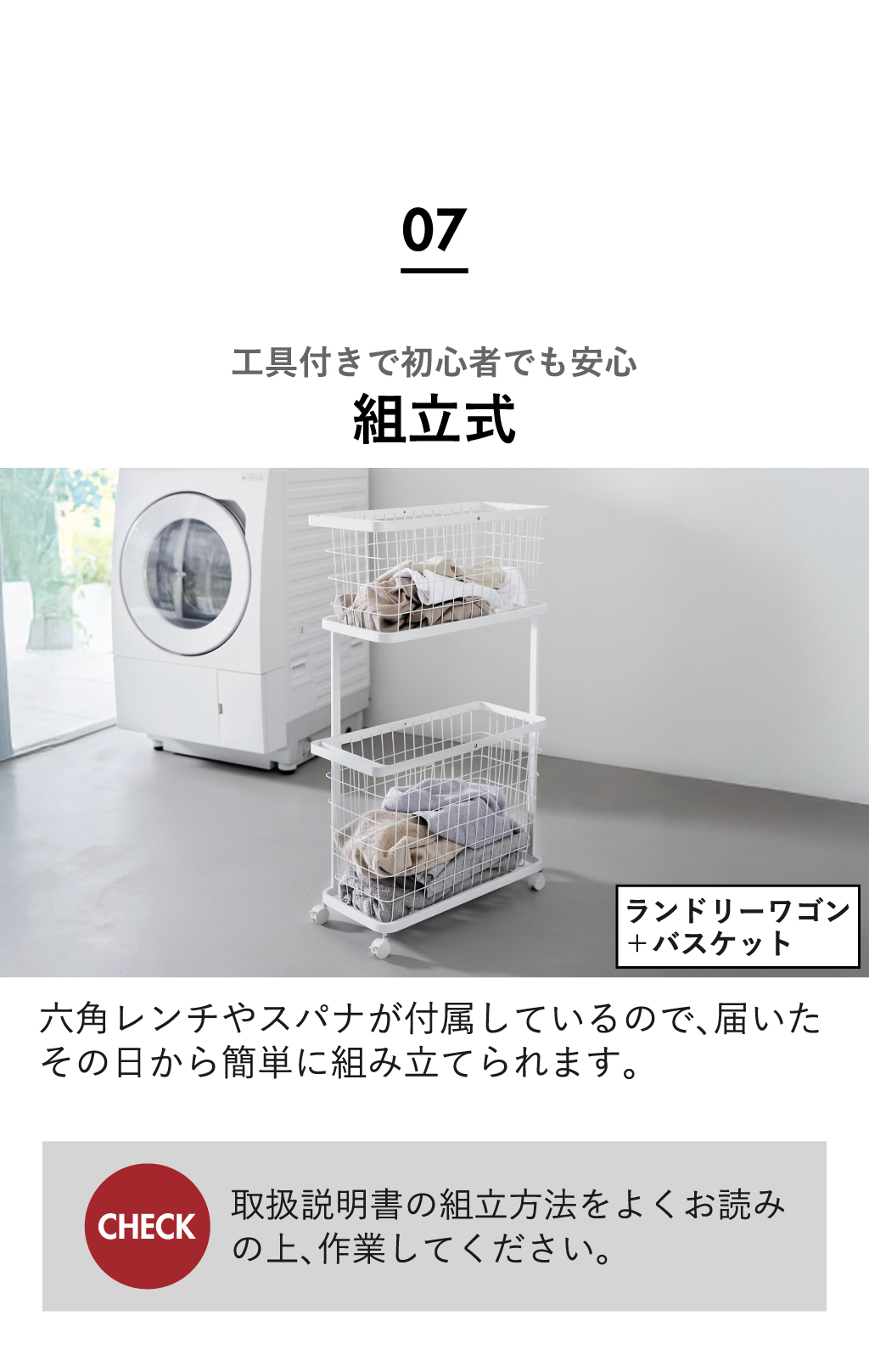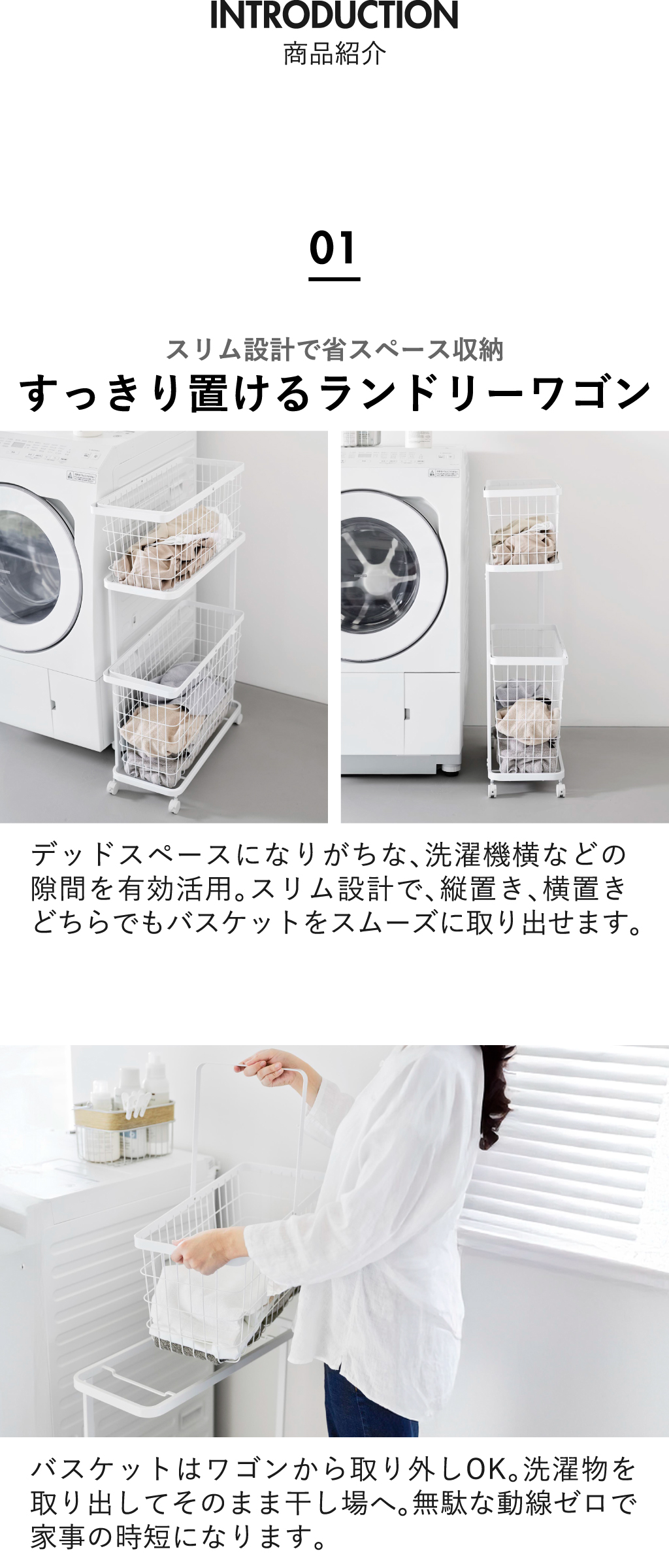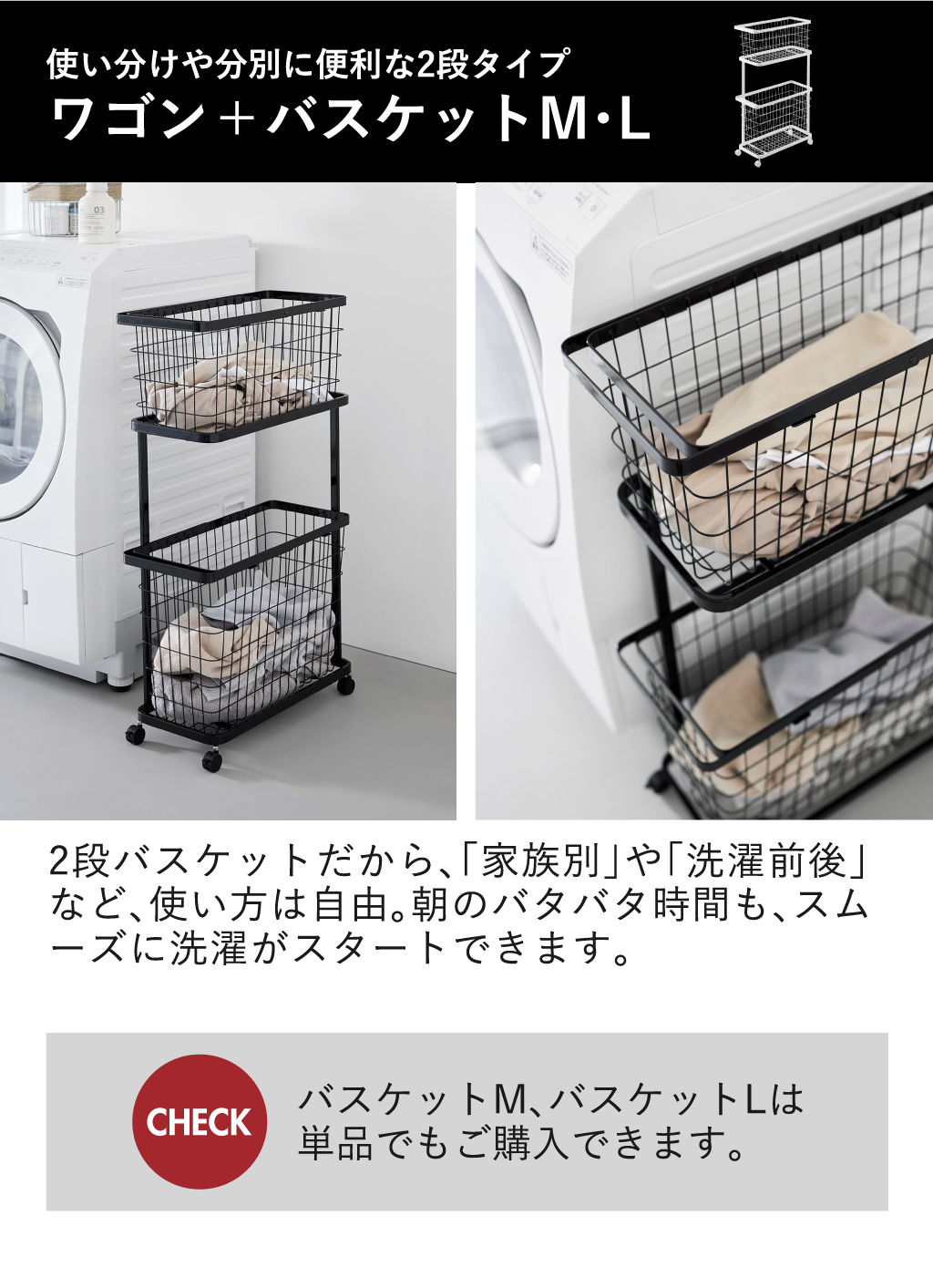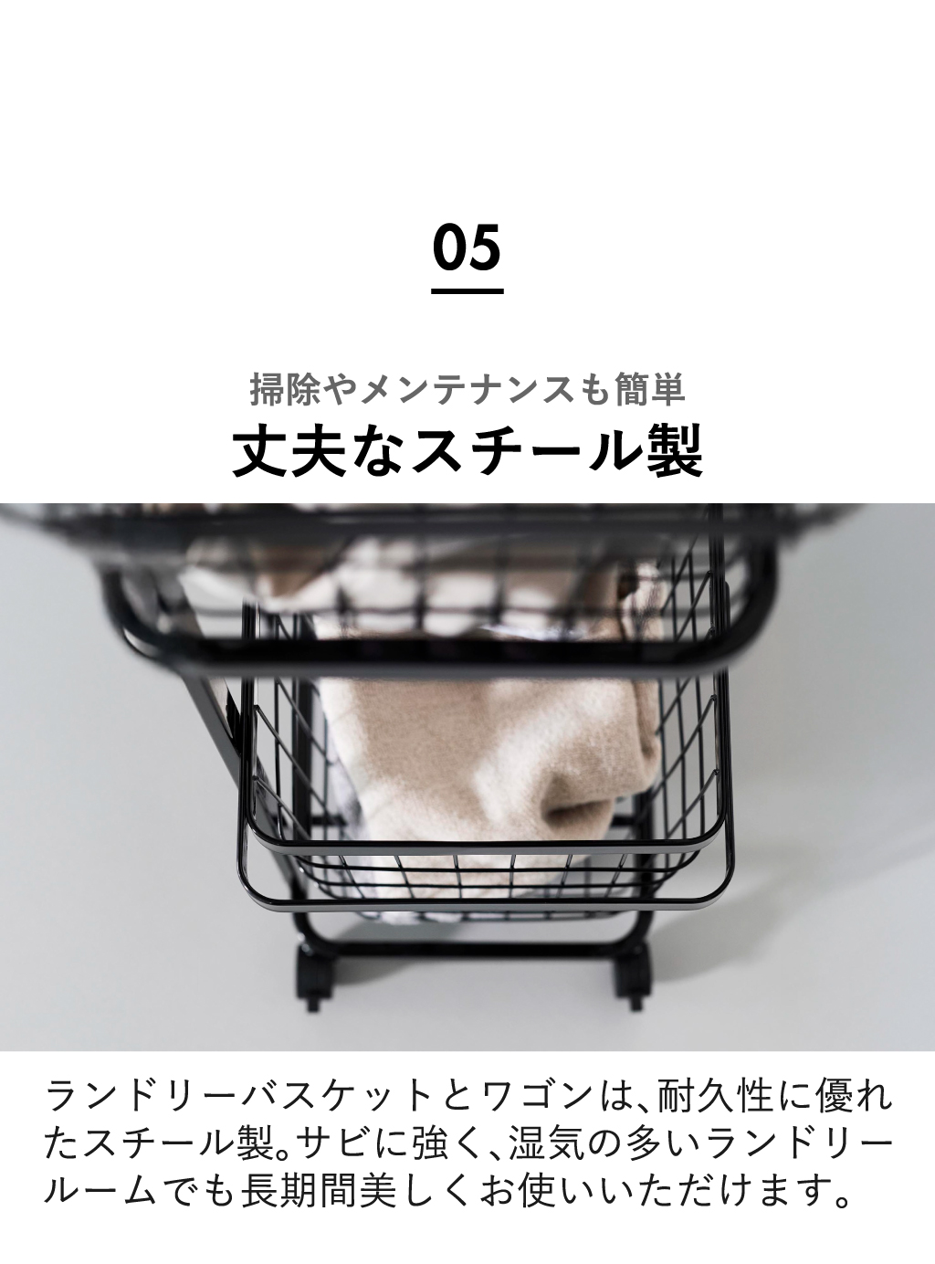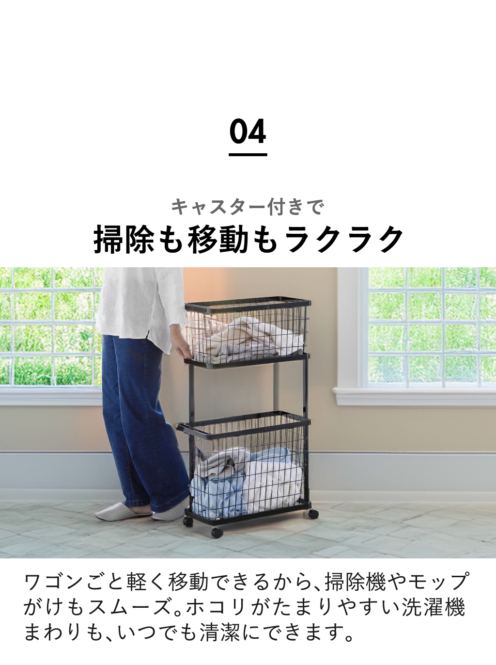 さらに、2段キャスター付きの設計で、洗濯物をたっぷり収納しながら、