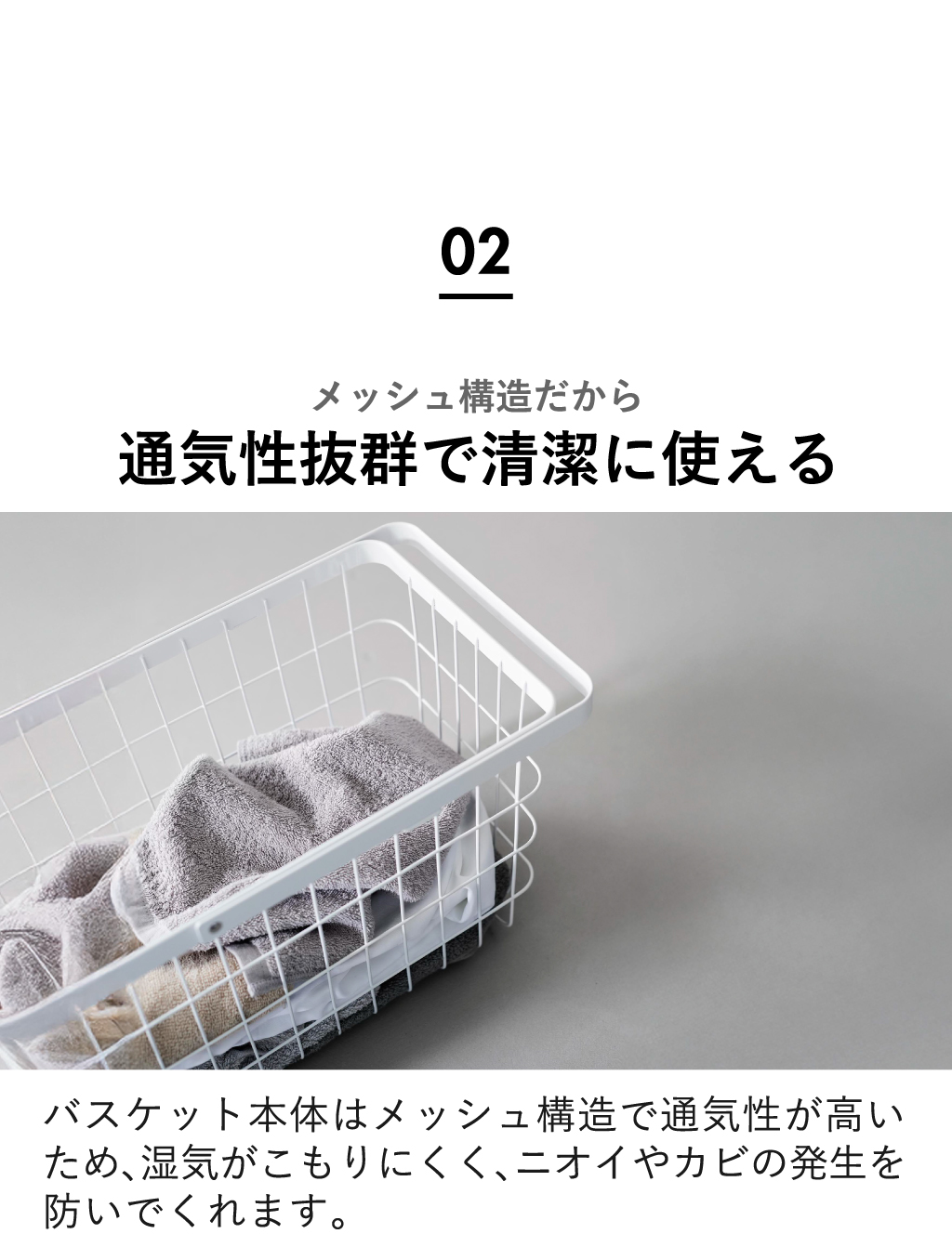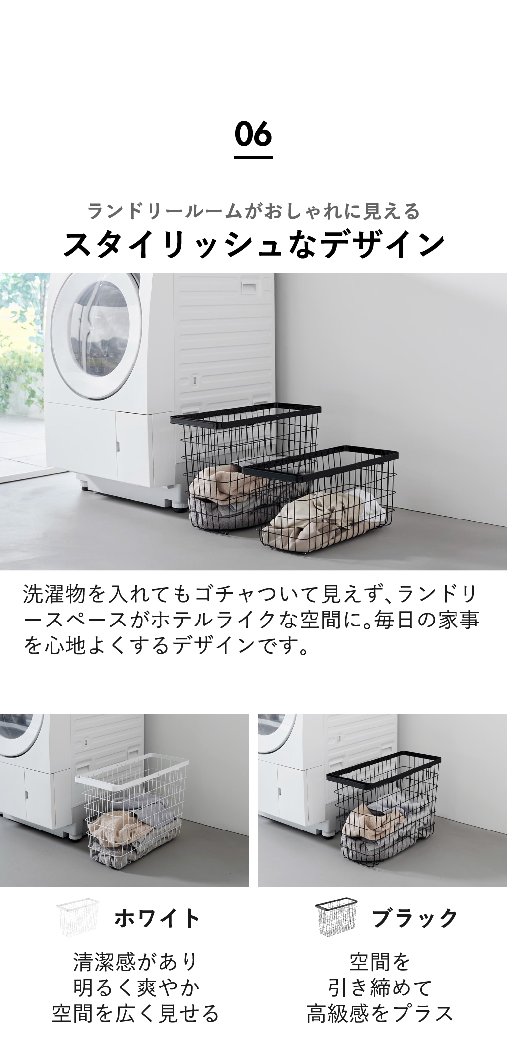 このランドリーバスケットスリムは、通気性にも優れたワイヤー構造で、