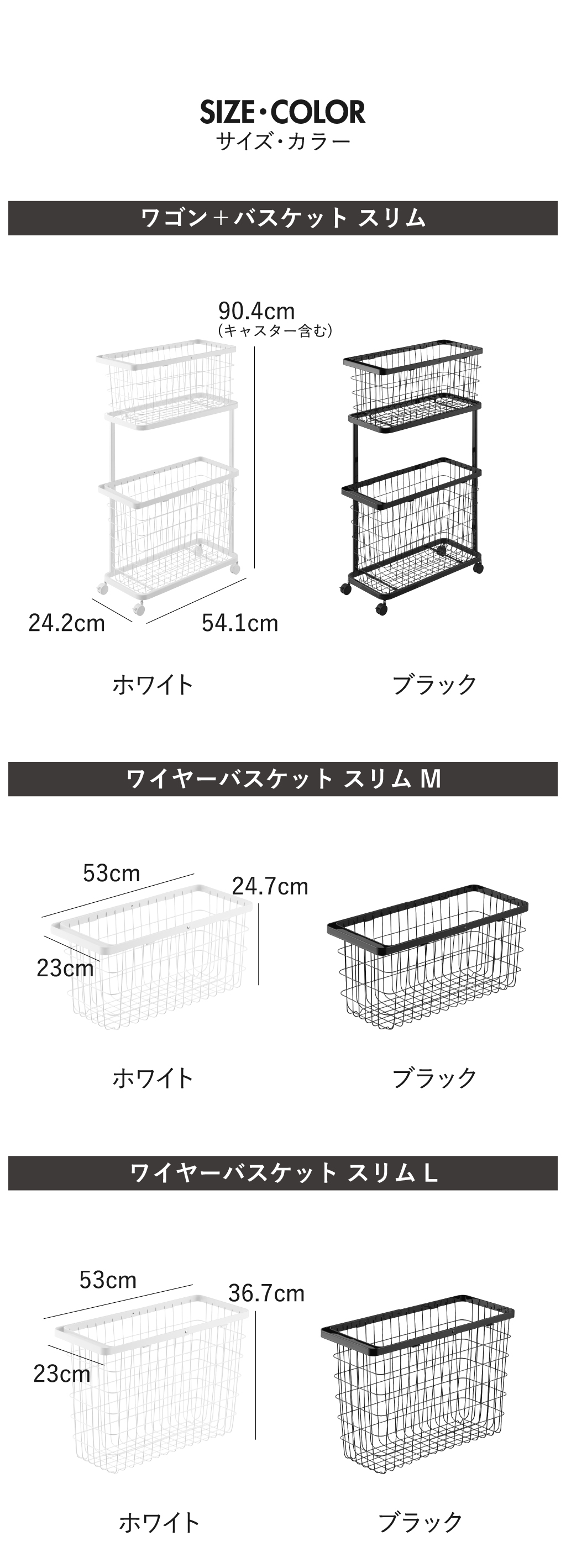 すっきり収納できるのが魅力のランドリーバスケットスリム。