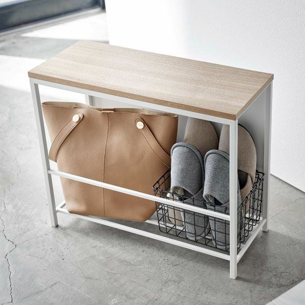 玄関で出入りの際によく使うアイテムをすっきり整えるために設計されています。