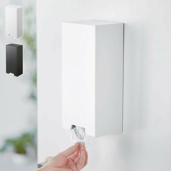 玄関扉に貼り付けられるマグネットタイプのマスクケースです。標準サイズはもちろん、大きめの不織布マスクや個包装された立体マスクもすっきり収納。インテリアに馴染みやすいおしゃれなデザインで、マスクの生活感を隠してスマートに収納してくれます。色は、ホワイトとブラックの2色からお選びいただけます。