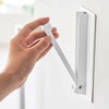 ハンガー部の取り出し方は2通り。上部分を手前に引くか、下部分を指で押すか、設置した場所によって選ぶことができます。さっと片手で取り出せるので、脱いだ服の一時置きや、次の日着ていく服の準備など、様々な場面でストレスなくお使いいただけます。