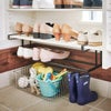 設置方法は、左右のフックを棚板にさっと差し込むだけ。大人用のシューズやサンダルなら、2~4足まで収納できます。2本のバーの距離は約12cmだから、大人だけでなく、お子様の靴も収納できますね。