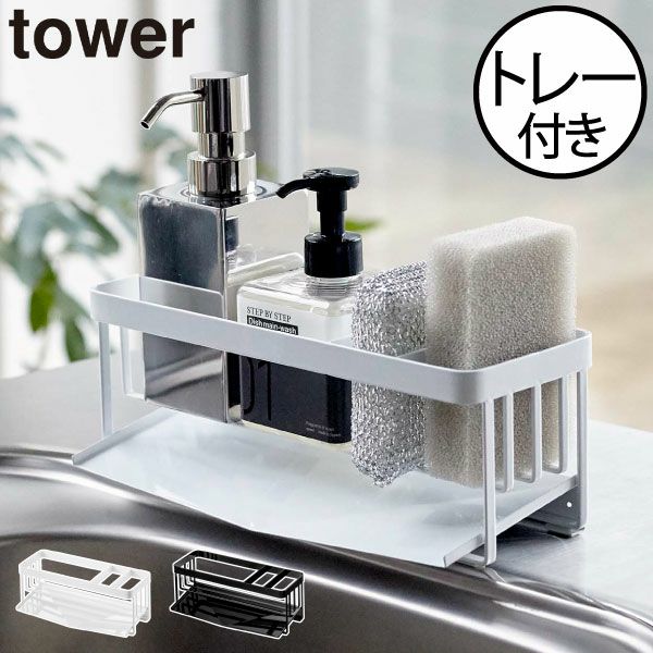 【 山崎実業 水が流れるスポンジ&ボトルホルダー タワー tower 】
