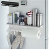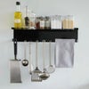 ワイドな棚と引っ掛けバーでキッチン用品をひとまとめ。磁石で設置できる収納ホルダー