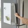 背面にはマグネットが付いてます。冷蔵庫横やスチールラックなど、マグネットがくっつく平らな面へ気軽に取り付けられます。使いたいとき、すぐ手に取れる位置へ収納できて便利です。ケースは強力な磁石でしっかり固定されるので、ずり落ちません。