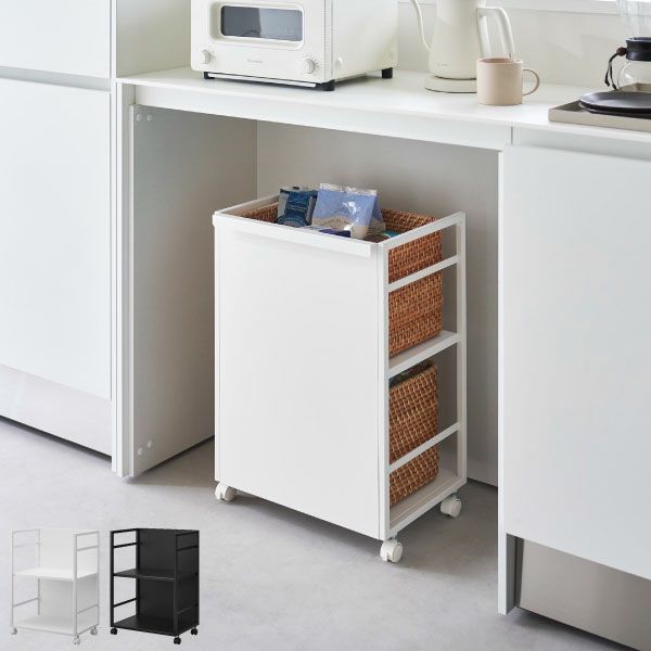 棚が2段のSサイズは、幅33.8cmのスリム設計で、キッチンや洗面所、リビングの隙間に設置可能。