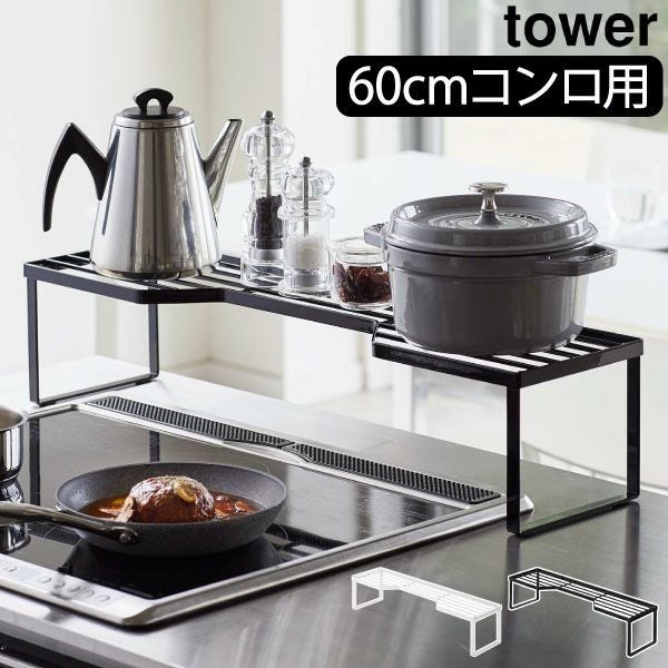 山崎実業 排気口カバー上コンロ奥ラック タワー 60cmコンロ用 tower | キッチン雑貨・タワーシリーズ