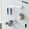 フックは横にスライドさせることで、自由に位置を変えられる可動式。収納する物のサイズや形に合わせることができるので、キッチンツール同士が重なることなく収納できて、無駄なスペースをなくしてくれます。