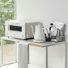 スチールの天板は耐荷重10kgなので、トースターやケトル等の家電も設置できます。 天然木のバーはタオルや布巾を掛けるのに便利です。