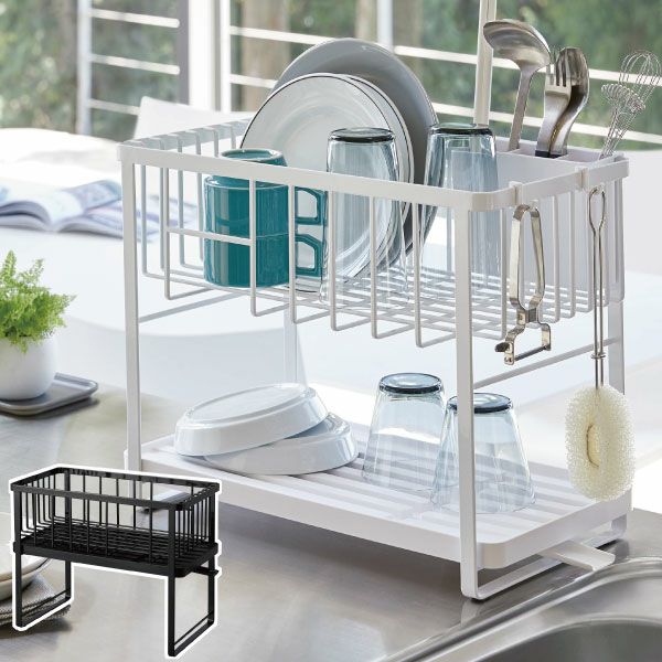シンプルで機能的なスチール製の水切りラックです。使うシーンに合わせて、水切り部分を1段と2段、お好きな方に調節して使うことができます。