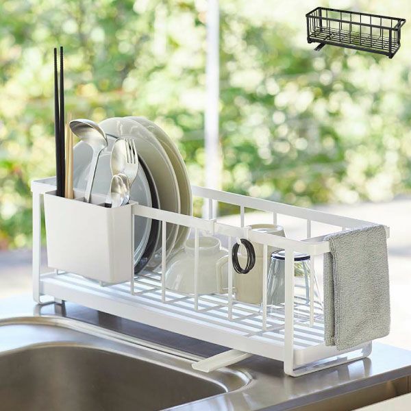 あまり広くないシンクでもしっかりと水切りスペースを確保できるスリムな水切りかごです。