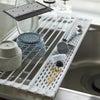 シンクの上に渡して設置する、スリムな水切りラックです。使わないときはクルっと折り畳めるので、シンクまわりでの作業が広々快適になります。キッチンもすっきりとした印象に。
