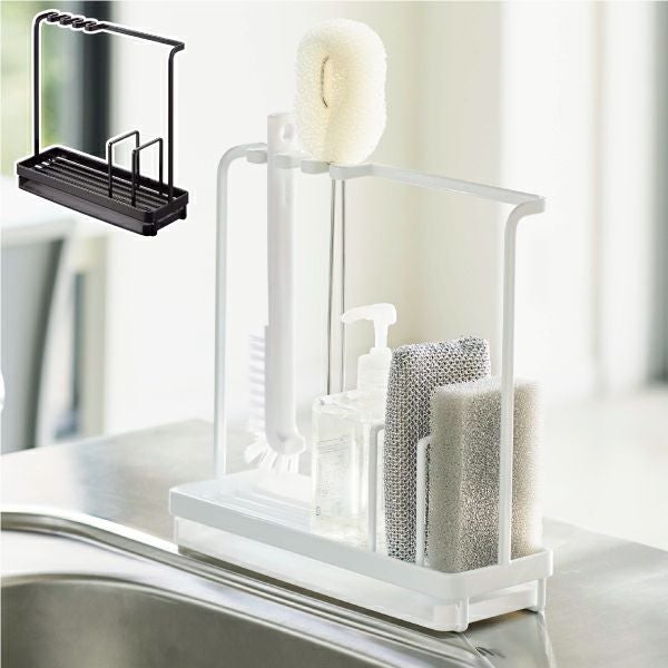 スポンジや食器用洗剤、ボトルブラシ、ハンドソープなどをまとめて収納できるツールスタンドです。スタンド底面にはスリット入りで、水切りしながら収納できます。スポンジホルダーが2つ付いているので、種類を分けて収納できます。