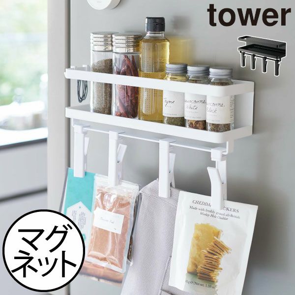 【 山崎実業 マグネットスパイスラック&回転式クリップ タワー 4連 tower 】