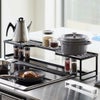 排気口を油汚れからガードしてくれる排気口カバーと、収納力をプラスしてくれるコンロラックが1つに。コンロ奥のもったいないスペースを活かして、排気口を清潔に保ちつつ、調味料や鍋を収納することができます。