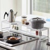 コンロ奥の空間を活かして、排気口を守りつつ収納もできるコンロラックです。